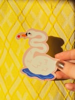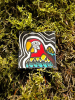 Approx. 3 inches in size, printed on high-quality vinyl. Can survive the dishwasher, your snowboards, cars, and who knows what else? I'll leave that up to you to figure out
